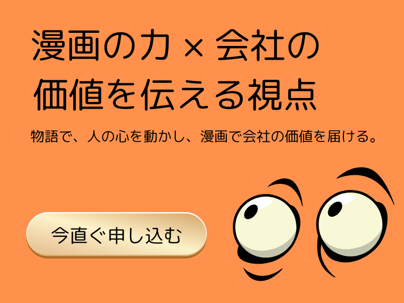 ビジネス漫画は、名刺代わりやランディングページに活用でき、会社の理念やサービスを直感的に伝えます。視覚的に分かりやすく、共感を生みやすいため、興味を引きやすく営業ツールとしても効果的です。